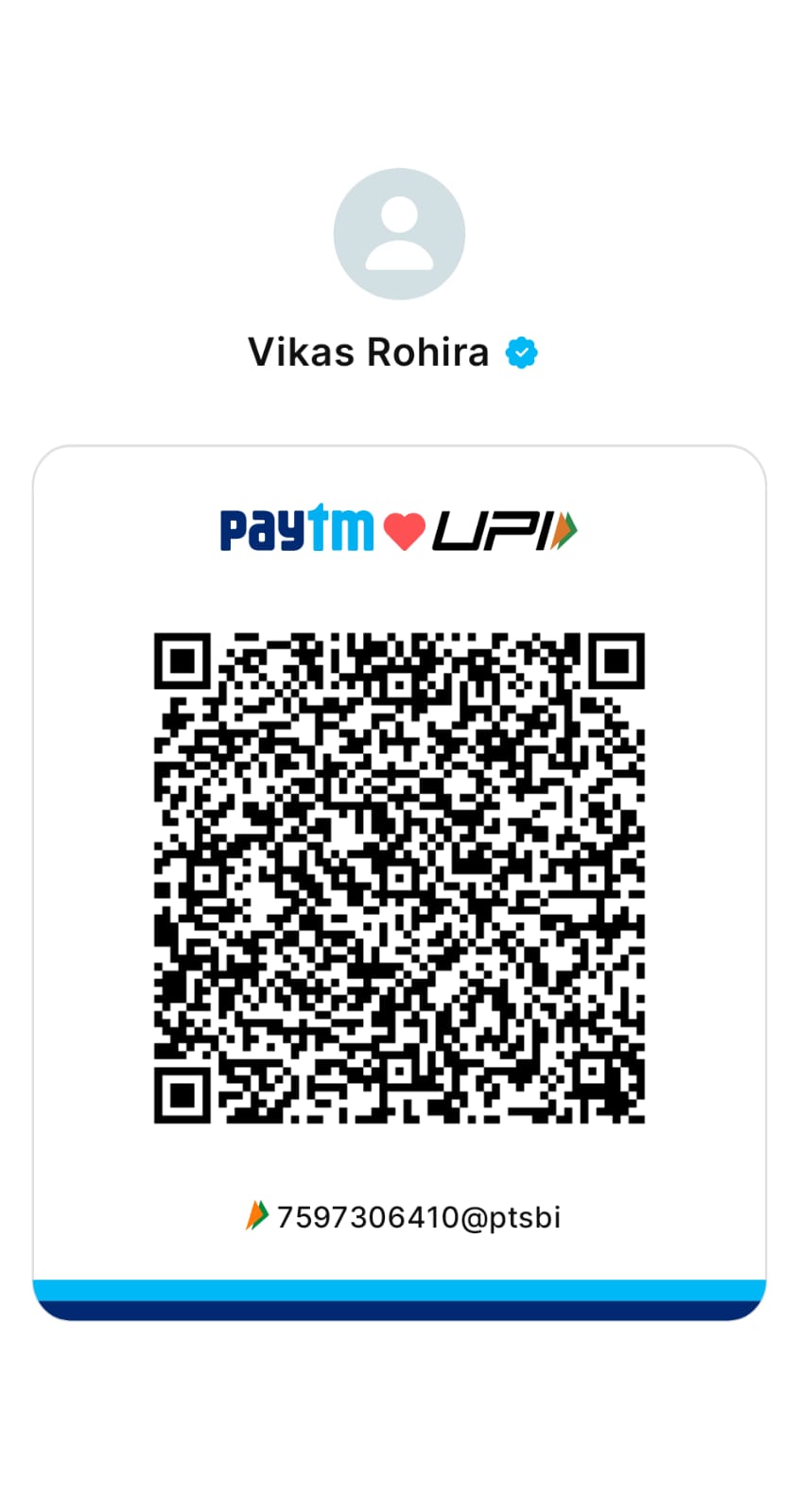 Name - Vikas Rohira UPI Handle - 7597306410@ptsbi